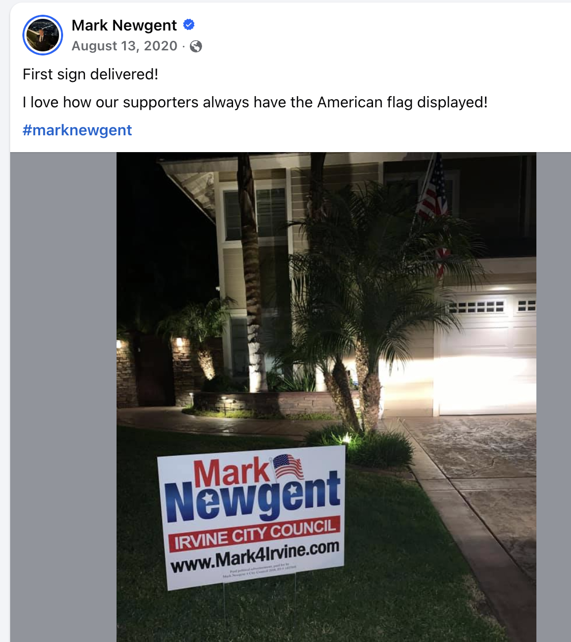 Public filings show Mark Newgent ran for Irvine City Council in 2018 and again in 2020. These were not isolated civic flirtations. They were structured campaigns with formal FPPC filings, including:
